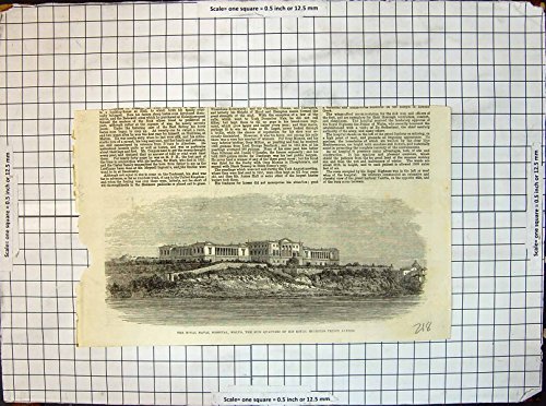 Old Original Antique Victorian Print Royal Naval Hospital Malta Sick Quarters H R H Prince Alfred 218J648