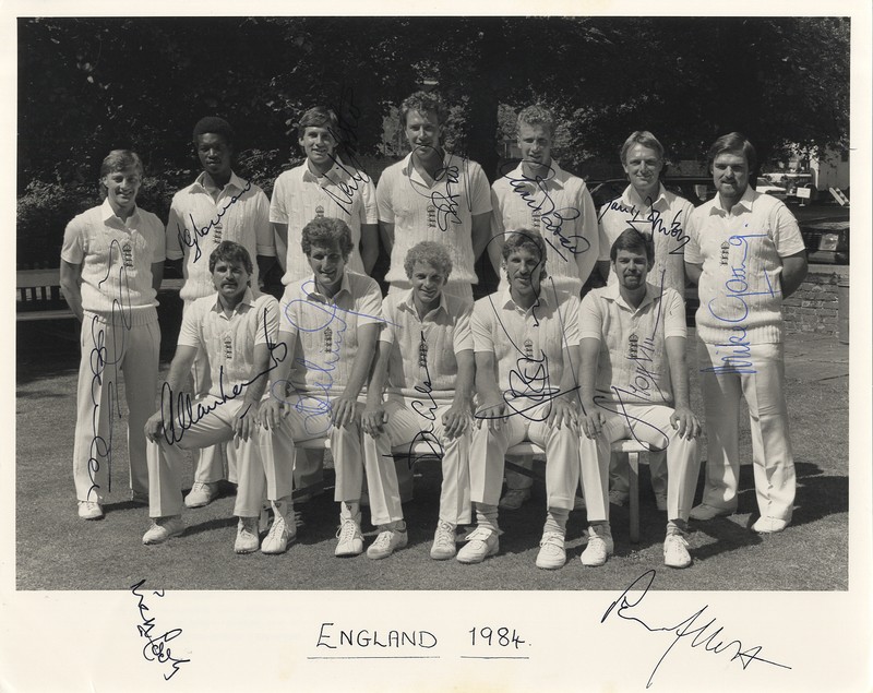 England 1984 Test Cricket Team - In Person Signed B & W Photograph