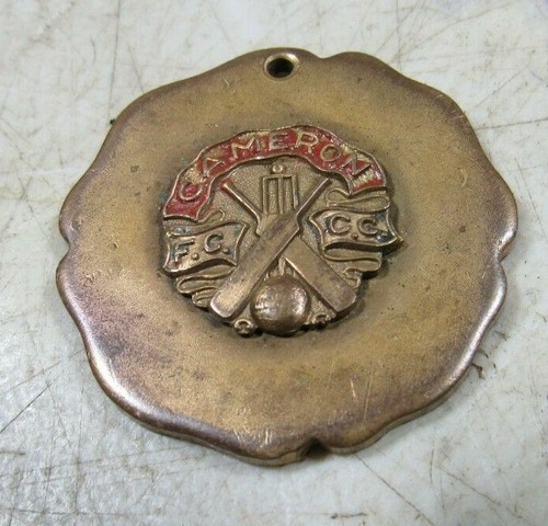 Vintage/Antique Brass Cameron F.C. C.C. Cricket Medallion Pendant W.F. Esling Ny