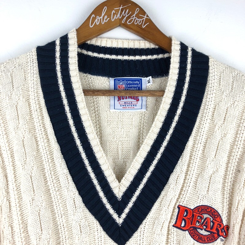 Chicago Bears Cricket Sweater V Neck Pullover Nutmeg Mills Nfl Xl True Vintage