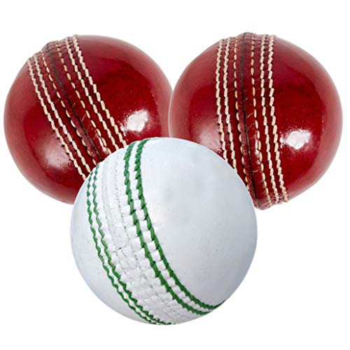 Adii Sports Six Gear Cricket Balls Leather Hand Stitched Club County Cricket Ball 5.5Oz Grade A Hard & Seasoned White & Red Balls (Pack Of 3 Red/White)