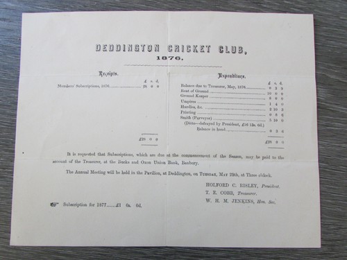 Deddington Cricket Club Oxfordshire 1876 Original Set Of Printed Annual Accounts