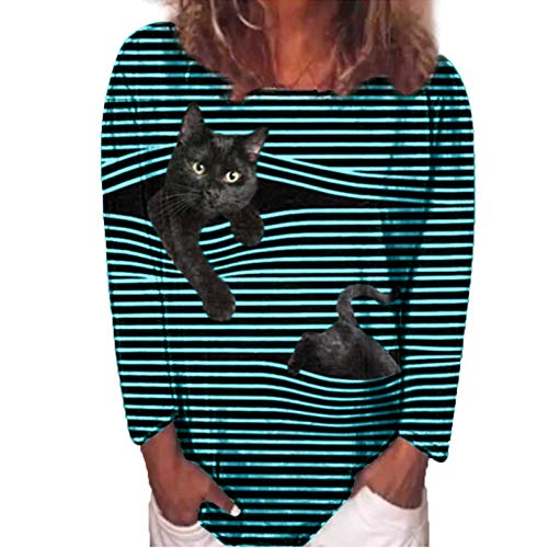 Black Cat Shirts For Women 3D Black Cat Striped Shutters Funny Graphic Cute Tees Crewneck Tops Cat Owner Lover Gifts