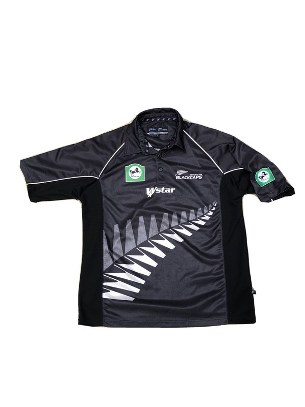 New Zealand Blackcaps Wstar Official Cricket Shirt Sz Large L Jersey Polo Rare