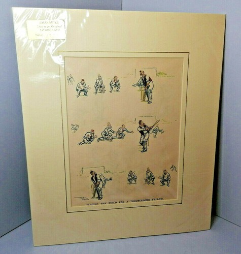 Lithograph - Cartoon Cricket Print Hand Coloured Mounted Art Work Frank Reynolds