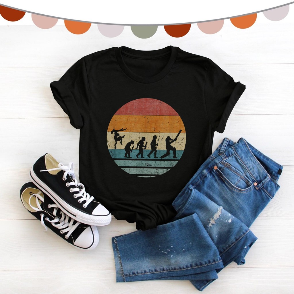 Vintage Retro Evolution Of Cricket Player Silhouette Funny Shirt . new, new,