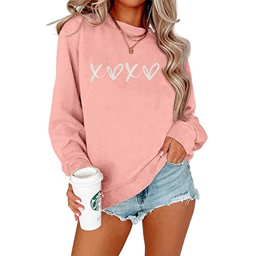 Gliglittr Women Valentine Day Sweatshirt Funny Leopard Heart Love Graphic Pullover Crewneck Long Sleeve Blouse Shirt Tops Pink Small)