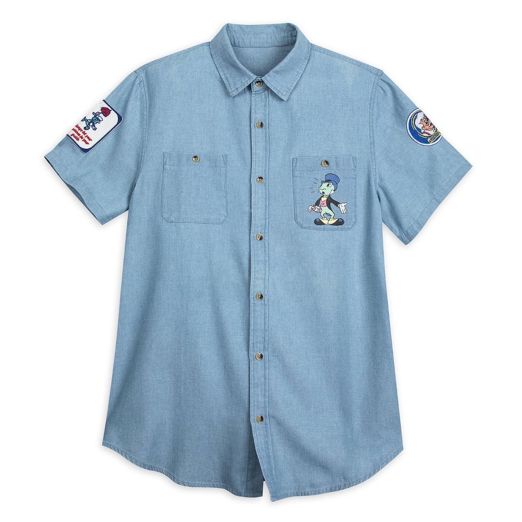 New Disney Parks Pinocchio Jiminy Cricket & Geppetto Chambray Button Down Shirt