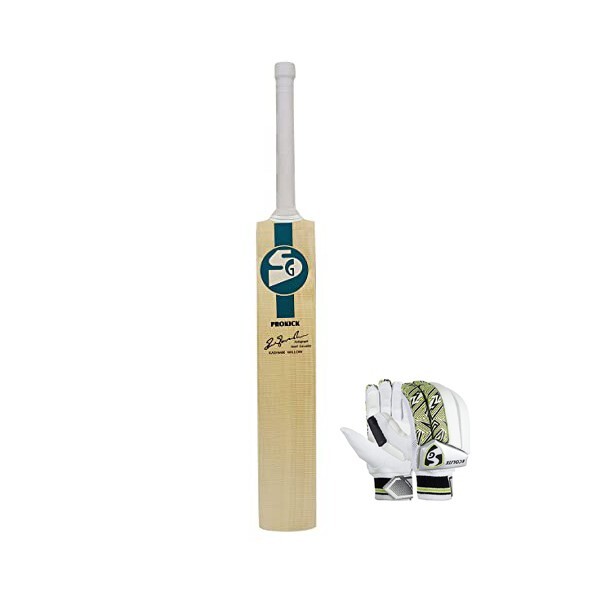 SG Prokick Cricket bat Short Handle Full Size With SG Ecolite RH Batting Gloves