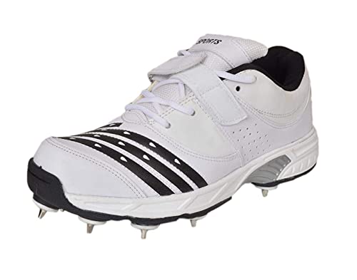 Hitmax Sports cs.765 Metal Spikes Cricket Shoes for Men (White) Durable (us Footwear Size System, Adult, Men, Numeric, Medium, Numeric 8)