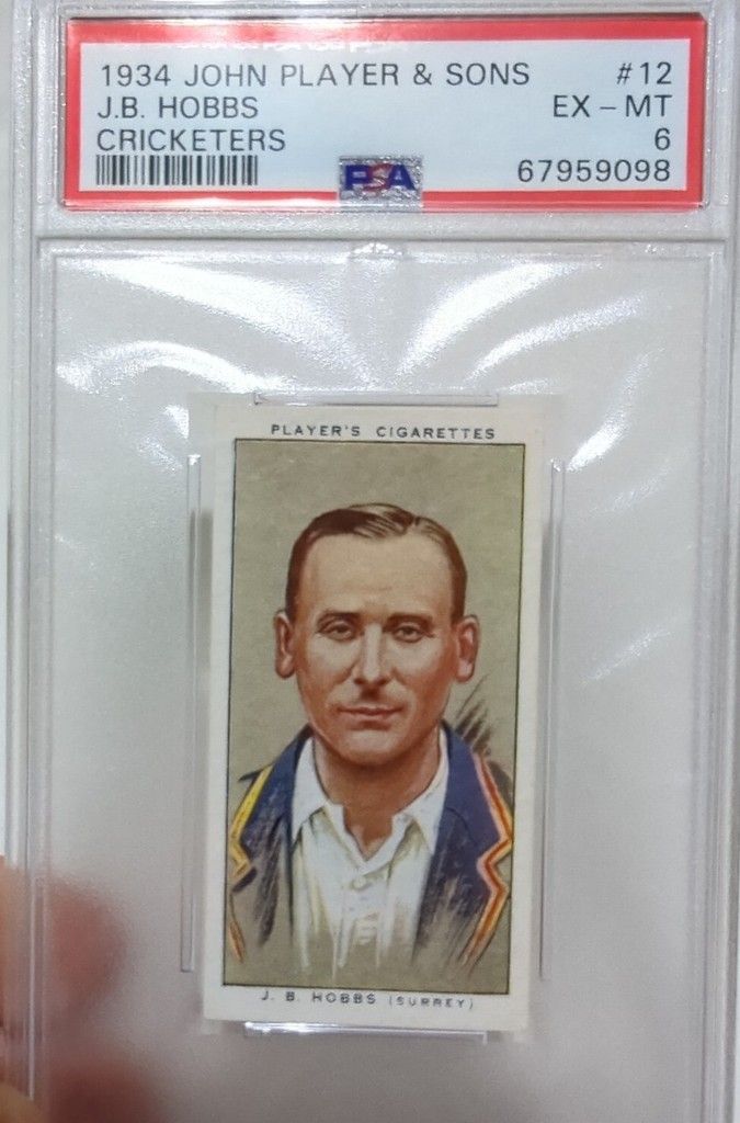 PSA 6 Jack Hobbs 1934 John Player Cricketers Card #12, Pop 2, Only 2 Higher