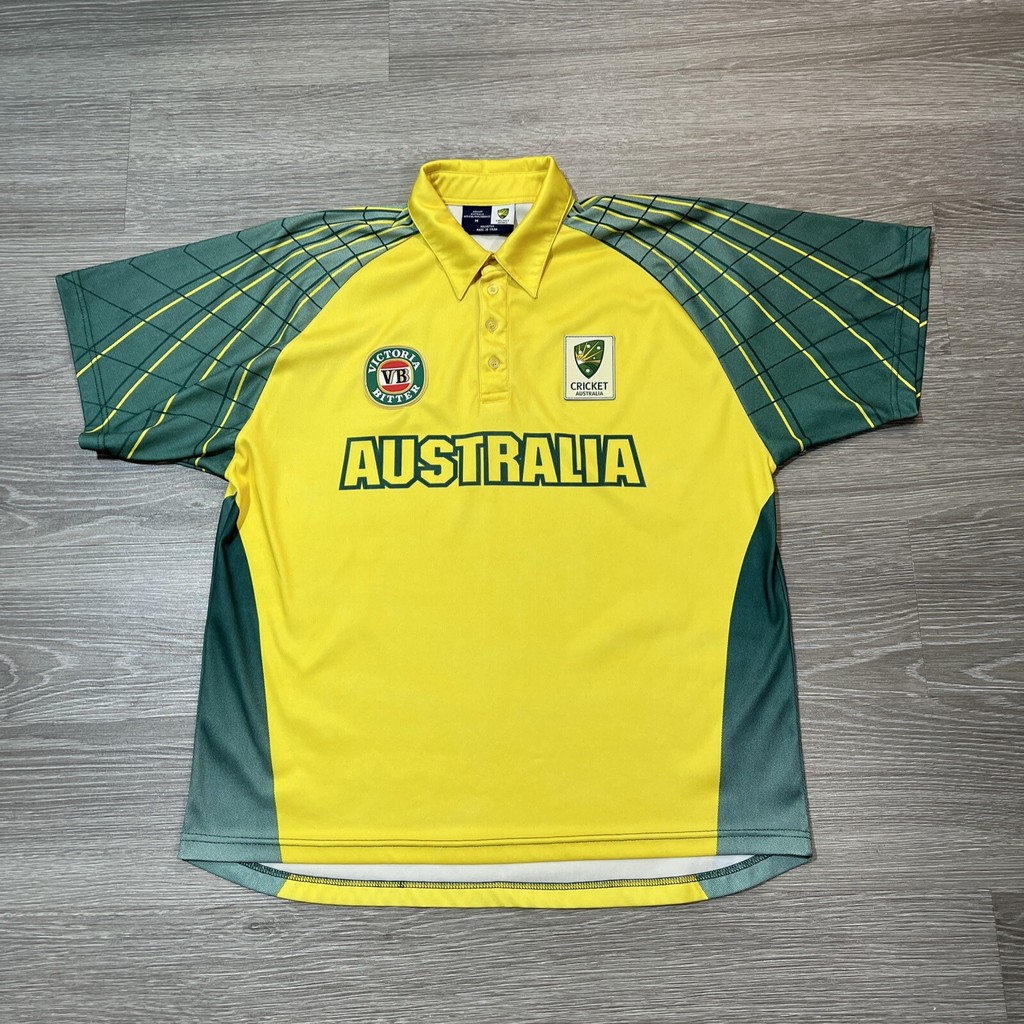 Cricket Australia Jersey Men Short Sleeve Victory Green Yellow Polo VB Shirt