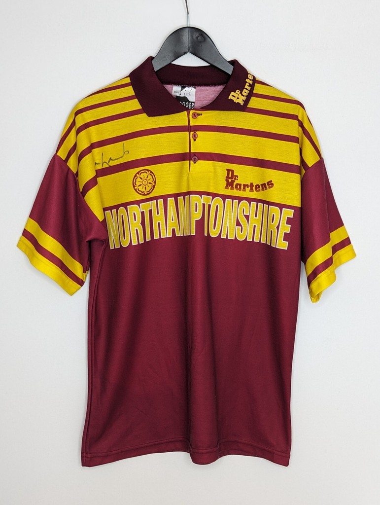 Vintage 90s Northamptonshire Cricket Jersey Shirt Signed By Alan Lamb Rare