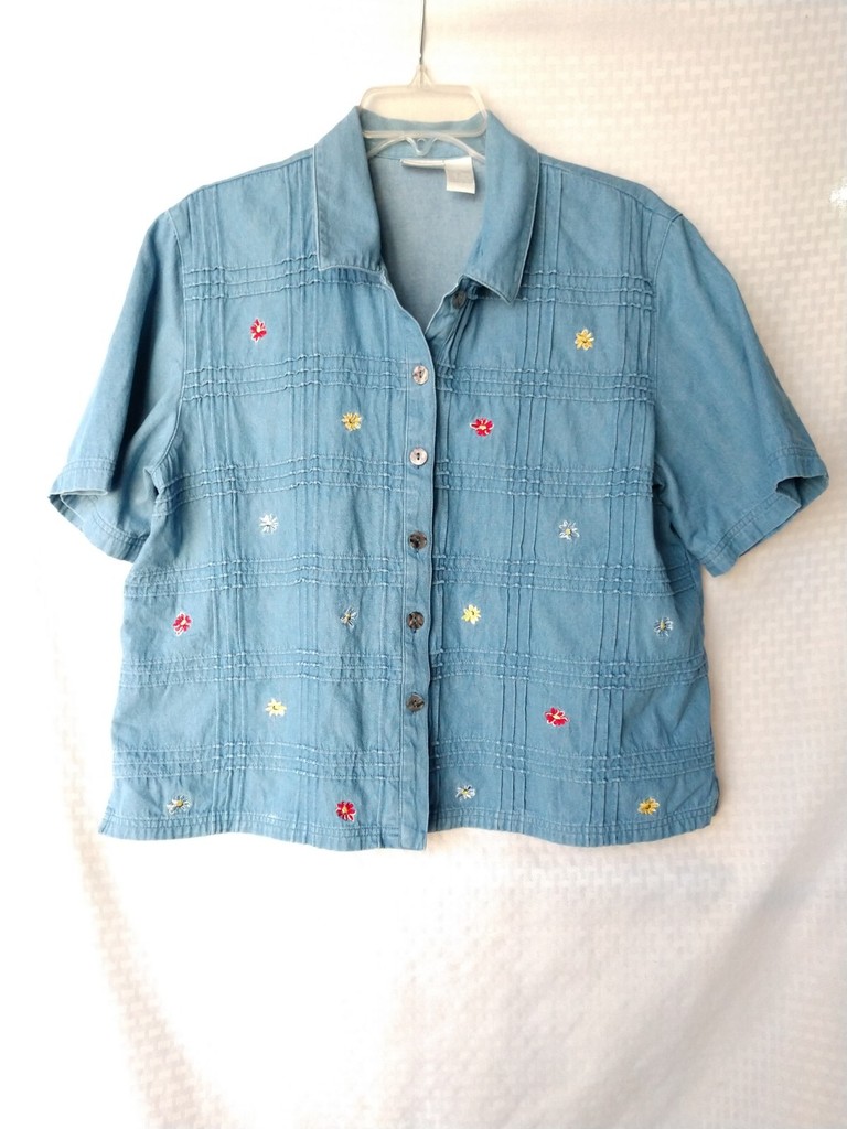 Vintage Denim Floral Shirt Embroidered Blue CLC Cricket Lane Size XL Chest 44