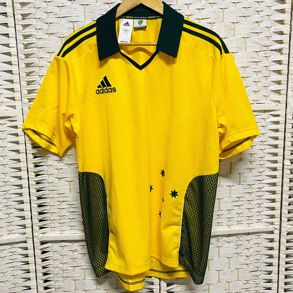 Australia Cricket Shirt Mens XL Yellow Adidas Sports Polo Shirt Like New 2026